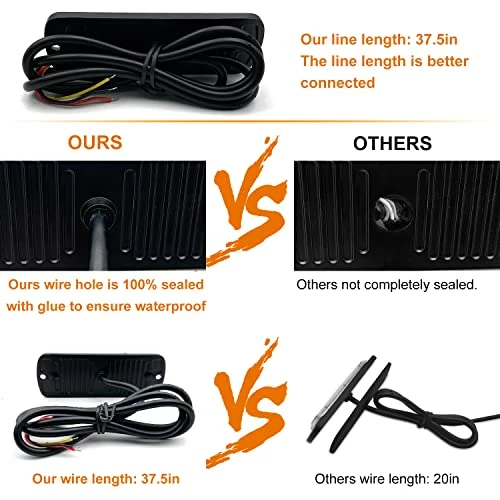 The media could not be loaded. If you want good quality, and a super bright lights, spend the money and get these lights! Not only are they reasonably priced and don’t break the bank, but they are super bright compared to some of the other LED Amber lights I have gotten in the past. The wire used on these lights is good quality wire-probably 18 gauge, but compared to many of the other LED Lights out there and I have tried several, this company uses thicker quality wire and each light has probably 20+ inches of wire to work with making your life and the job much easier and friendly. Compared to the previous LED’s, I had mounted, I am getting “blinding” reactions whenever I show them off. In the video 1 light, is slightly dim, I reached out to the company and they apologized and advised they had a replacement on its way free of charge. To me, that says a lot about a company and the way they conduct business. I look to continue to do business with this company and believe they are in it for quality.I have not had any of the issues with moisture yet that I have read in some of the other reviews….but my intentions are to do the maintenance before it happens, so I intend to put an extra bead of silicone around each light before the first rain ever gets to them. I expect with reasonable care and caution, to get a long life out of these bright lights. If professionalism is what you’re looking for-get these!