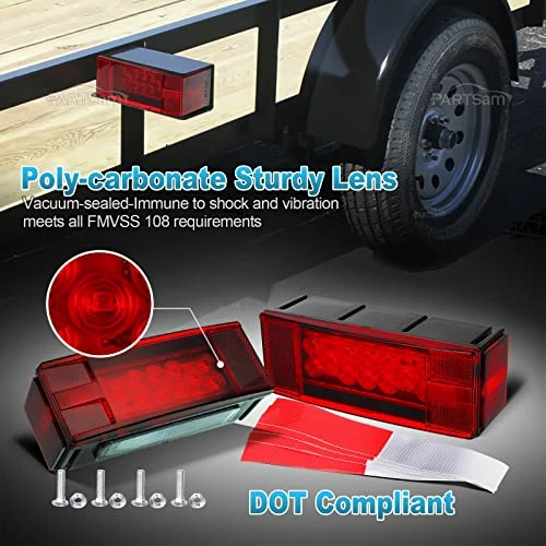 - DOT Compliant, IP68 Waterproof and Submersible(We Upgraded it this Year): There is no screw on the lamp shade, the LED trailer lights are completely welded together, The circuit board of tail light is seal. We have this tail light chipped in the center to prevent water to come in, thus, the water will flow into interlayer of the outer lens, but be prevented by the isolated chips. A drain hole is designed to pull out all the water. This is to guarantee that water will not damage the diodes or circuit board;