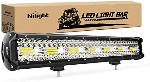This light bar is unbelievably bright. Don’t even think of using this on the road. Off road use only. The build quality looks sturdy and well made, particularly for the affordable price. My only concern based on the construction might be for long term waterproof reliability.Like all of these imported LED light bars, and in fact most LED products, the manufacturer’s specified wattage is “incandescent equivalent watts”. The measured values for this 20″ Nilight LED light bar are 7.3 amps @ 12.75 VDC = 93 Watts. I’d use a switch or relay rated for 10 amps DC. Unlike incandescent lighting, there isn’t a much higher inrush current with LED lighting.