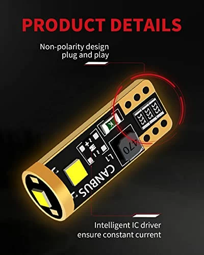 - 【5 Mins Quick Installation】1:1 design with halogens, non-polarity, play and plug. T10 led bulb is fit for 194, 168, T10, 2825, W5W, 161, 192, 193, 549, 12961. NOTE: Please check the user manual or original bulb size before purchasing.