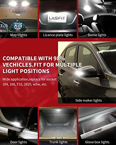 - 【CAN-BUS Ready】LASFIT 194 led built-in CANBUS system, is compatible with 95% vehicles, preventing error code and odd flickering.