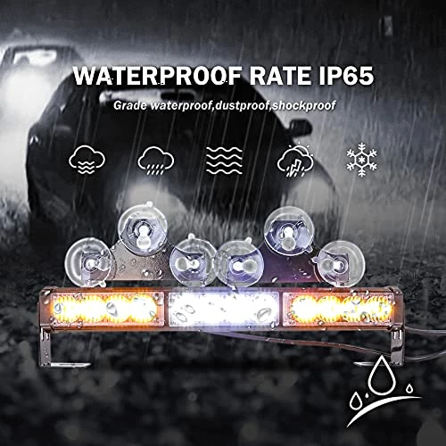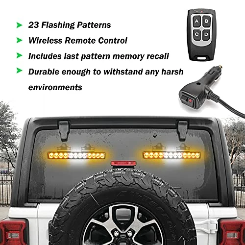 - Feature: Wireless Remote Control (Working Distance 6-10 Meters),Waterproof design,23 selectable flash patterns car led strobe lights.