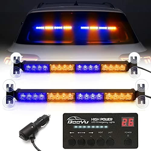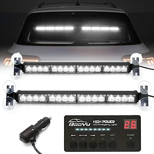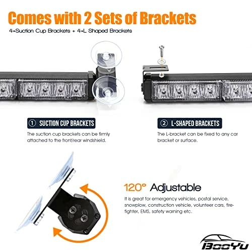 - EASY INSTALLATION — Each emergency dash light bar has 4 strong and stable suction cup brackets are firmly installed on the smooth windshield to prevent the warning light from falling off during driving.