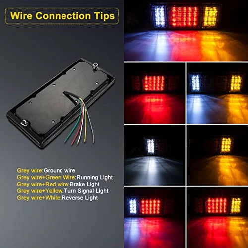 - EASY INSTALLATION: Designed with 5 specific colored wires for easy connection. Gray wire: negative. Red wire: brake light. Green wire: running light. White wire: reverse light. Yellow wire: turn signal light.