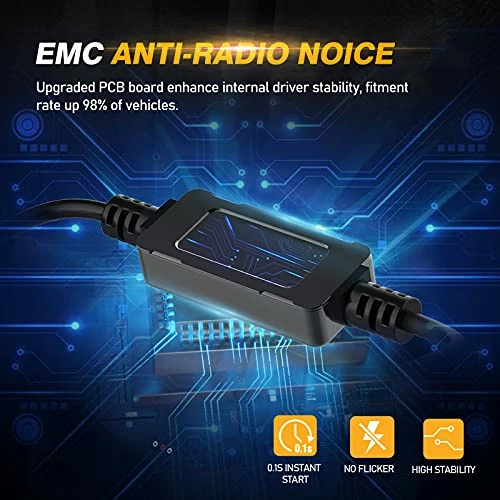 - 【Built-in CPU & EMC 】 5202 LED bulbs built-in constant current CPU, instant full brightness without start-up relay. Upgraded PCB board enhance internal driver stability, fitment rate up of 98% vehicles. Built-in EMC system, without electromagnetic interference, reduce radio interference issues, escort for save driving.