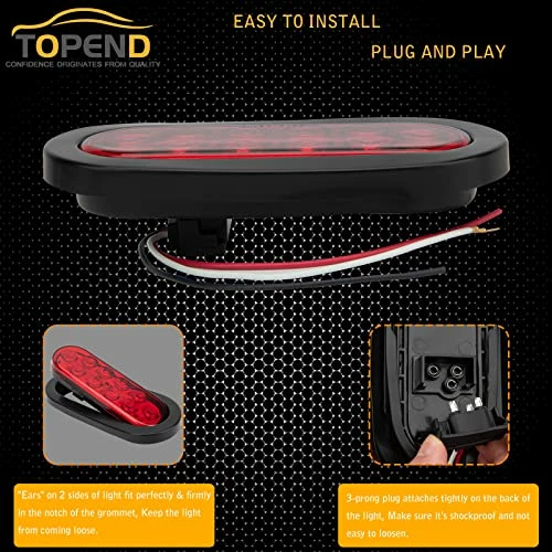 - 【Unique Design Makes Work Easier】Our 6in oval red led tail has unique “ears” on its two sides, upgrade notches on the inside of grommet, Lets you upgrade your lights in minutes. and a tighter attaching ability between 3-prong plug and it. These help the light fit perfectly and firmly on the grommet, Shake proof, there will be no worries of loosing light or wires.
