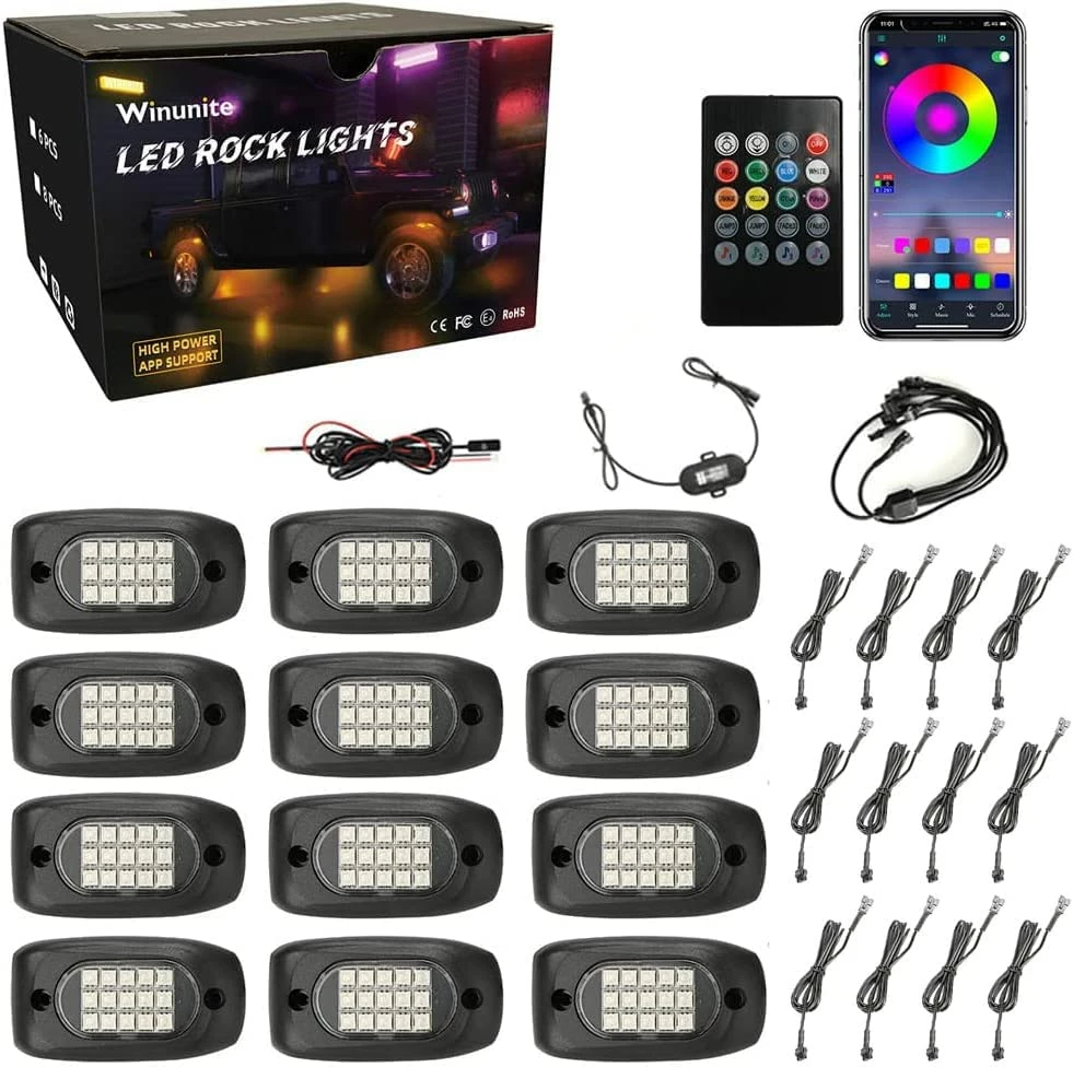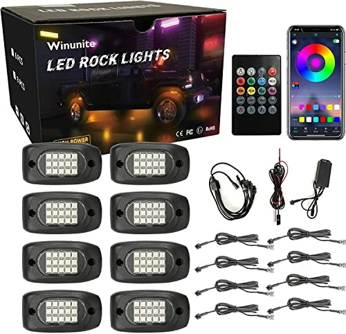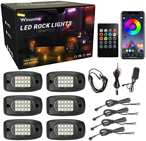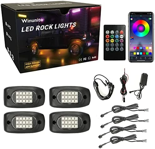 - 【WATERPROOF AND DUST-PROOF】No need worry about driving in rainy days or off-road driving. We tested the waterproof function and Winunite rock lights could work properly without any problem. You can use provided adhesive or screws and set the rock lights on the car fender flares.