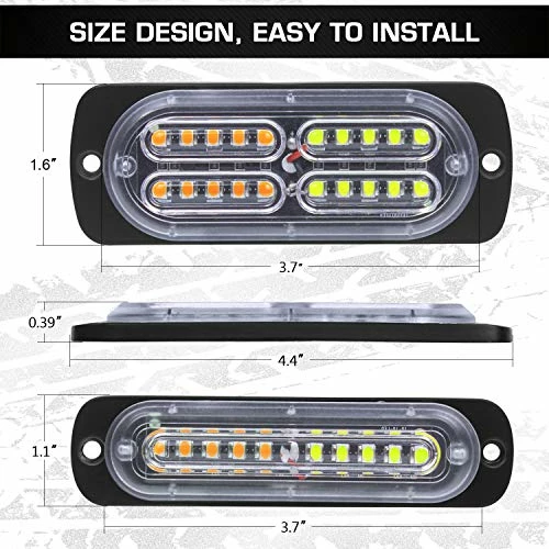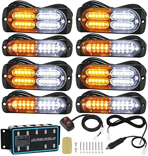 - 8PCS Super Bright Strobe Lights: Include 4X 24-LED 4X 12-LED Super Bright Sync Feature Strobe light and Main Control Box for Free Wiring Installation. With high visibility in daylight, midnight, raining or fog days. Improve the driver security and avoid accidents.