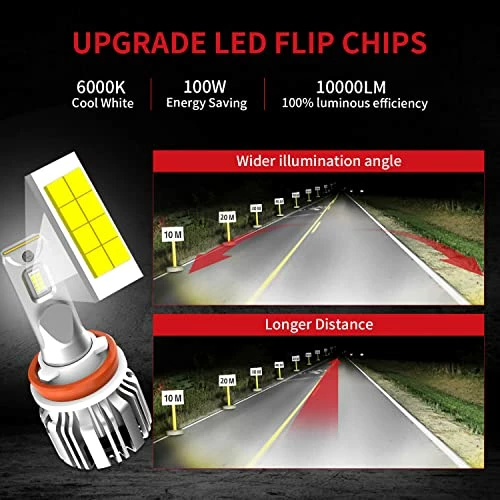 - ????【300% BRIGHTER THAN HALOGEN】: Utilizing upgrade LED Flip chips with 6000k cool white, the H11 9005 led bulbs combo offer 10,000 lumens while rated at 25 watts per bulb to maintain high light efficiency. Providing further and wider visibility for you to see the deer, wild animals, falling rocks or other obstacles in advance to ensures safer driving at night.