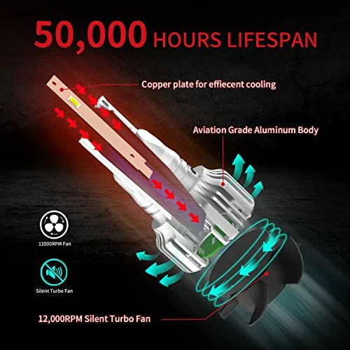 - 【5,0000 HOURS LIFESPAN】: Lasfit H11 9005 led bulbs comes with a copper base board, cold pressed aluminum heat sink and 12,000rmp cooling fan, it provides a high efficient and reliable cooling system, keep the led bulb running at its maximum potential. Better solve the dimming or over heated of led bulbs.