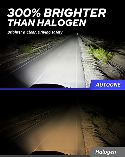 - 【300% Brighter Than Stock Lamp】-AUTOONE 9005 LED headlight bulbs equipped with high luminous efficacy CSP chips. 6000K color temperature LED Headlights offer an excellent working light temperature like daylight, which is best for nighttime visibility.