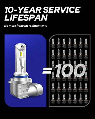 - 【1 LED Bulb=100 Halogen】-All-in-one designed 9005 bulbs offer fewer moving parts, making it less prone to breakage. Premium LED chip, excellent temperature control, and aviation aluminum shell ensure a 50,000H lifespan for these 9005 LED bulbs.