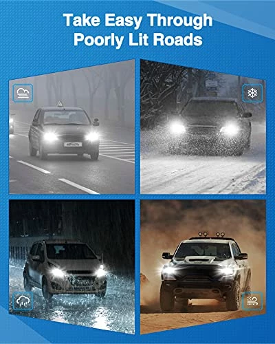 - 6000K Daylight White: Natural light, will give you a more comfortable night-time driving, your car will get an instant style upgrade with a modern high-end look. While 6500K blue light will weaken the penetration of light and causes eye strain