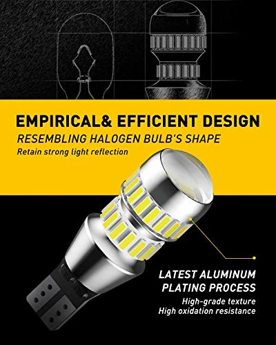 - Application: Used for upgrading the stock back up lights, reverse lights, plug and play direct replacement for 912, 921, 906, 904, 902, 922, W16W, T15, etc socket