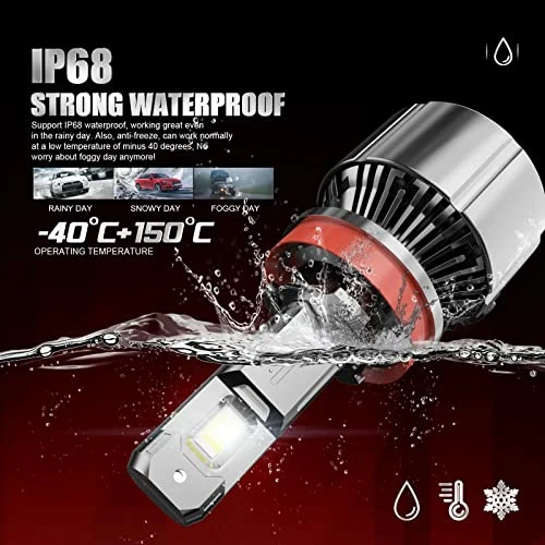 - H11 LED bulb, Customized LED chips, Producing super bright with output 5000 lumen per bulb for safety night driving, 6000K white light, No glare to oncoming traffic, No dark spots