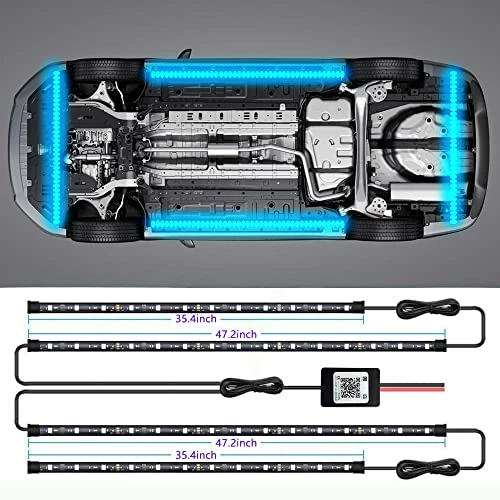 - ????Waterproof and Durable:Made with strong IP67 waterproof, dust-proof Flexible Rubber Tubing material, the LED Underbody System Light Strips body is well protected that completely sealed to work at any Road Conditions or Rain day. Car Underglow Lights suitable for 12V Cars, SUV, Jeep, Vans, Trucks decoration. Idea for under wheel arches, around the front grille, under foot-wells, in the trunk, along the dash