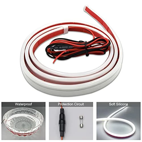 - 【Fuse Protection】Led Strip Lights about 1.5M long. Led Light iS flexible. The length can be cut and installed at will.The operating voltage is 10-15V.Design of low power characteristics, so that we use more secure and environmentally friendly.Short circuit protection and moisture-proof coating protection are built in the highlight led lamp, which has good waterproof performance and memory function to ensure your driving safety.