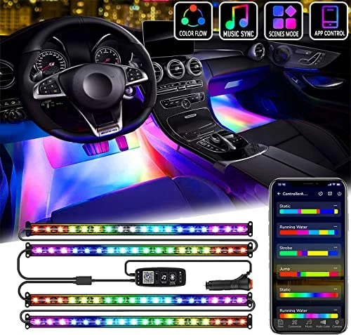 - Music sensor: with built-in mic, the strip lights sync to various music types, adjusts colors and speed with ambient music.The LED lights will change colors with the rhythm of the music, adding enjoyment and excitement to your driving.