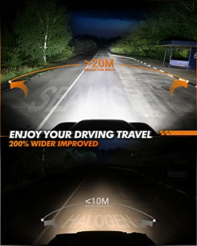 - 600% Brightness Improvement in Visibility: Sealight H11/H8/H9 LED Bulb is an ideal replacement for halogen bulb. With 6 times brighter illumination and 6000K daylight white, H11/H8/H9 led bulb kit brings better vision for night driving