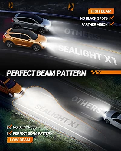 - Wider Visual Range: SEALIGHT 9005 H11 LED bulbs are 7 times brighter than halogen bulbs, providing farther visibility for you in advance to ensure safer driving at night. 6000K cool white close to natural light, reducing visual fatigue