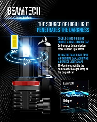 - Fanless Design: H11 | H8 | H9 led bulb runs more stable without noise, getting a quieter and more comfortable driving experience. Extend the lifespan, equivalent to 100 halogen bulbs.