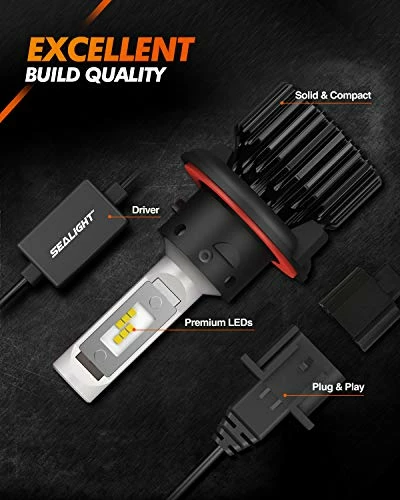 - Better Visibility: SEALIGHT H13 LED bulbs have better visibility, 6000K eye-protection xenon white. 1:1 halogen focus beam pattern