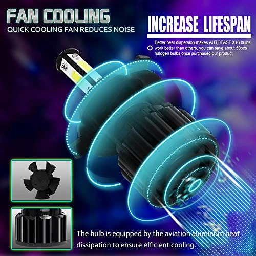 - Silent Turbo Cooling Fan:No matter how good the aluminum material can be, the turbo fan design bulb are always winner, it will effectively control heat ensuring continuous full lumens output. AUTOFAST 4-side bulb provide 7,000 RPM Powerful Turbo Cool fan.