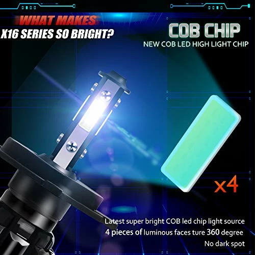 - 4-Side COB LED Design:Ture 360 Degree beam angle no dark spot,60 watts high power with clean 6500K diamond white light output. No warm-up lighting, 3 times brighter and further than original halogen bulbs