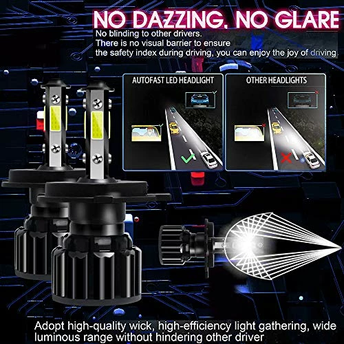 - Plug and Play Design:AUTOFAST LED 4 sided bulbs are All-in-one built-in driver design makes it easy to install in 10 mins. 1:1 as original bulb size, perfectly replace factory headlamps and no other tools required