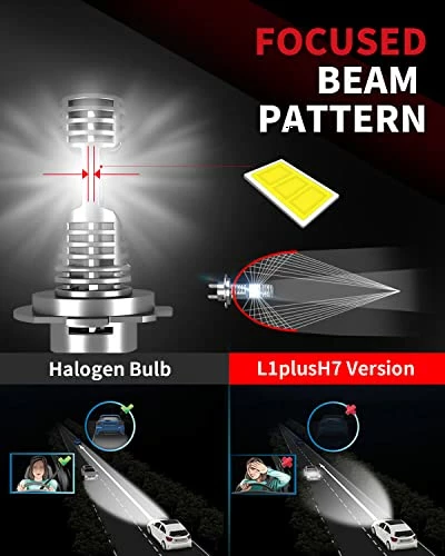 - ???? PERFECT OEM BEAM PATTERN – LASFIT H7 wireless LED bulbs perfect stimulate the great cut-off line and ultra-focused light of the original halogen, 1:1 beam patterns design as halogen.