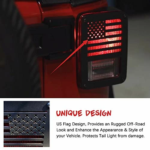 - Material: This US flag tail lights cover guard is forged with strong stainless steel and powdered with strach-proof powder. It is totally rust and corrosion resistant.