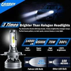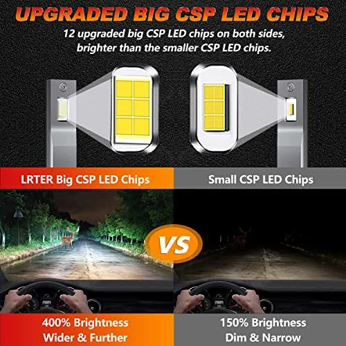 - 【400% Brighter h1 Headlamp Bulb Led Than Halogen】 High brightness LED H1 Headlight Bulbs with upgraded big CSP LED chips, 110w/set, 20000lm/set, 6500k cool white, 4 times brighter than the halogen lamp, making it easier to see smaller objects on the road at night.