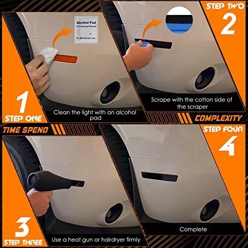 - Easy to Install: This is precut overlays, no modification or trimming needed, just tear off the film and apply the tint cover to your lights. recommend wrapping the corners with a heat gun or hairdryer to stick better
