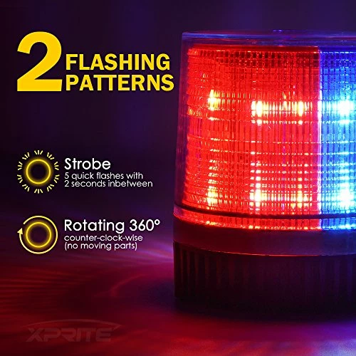 - 【2 Strobe Patterns and Switch】 Two Selectable Flash Patterns: 1.Strobes; 2.360 Degree Rotates Counter-Clockwise Pattern.The Convenient Power Switch to Turn On And Off, And Second Switch to Change Patterns.