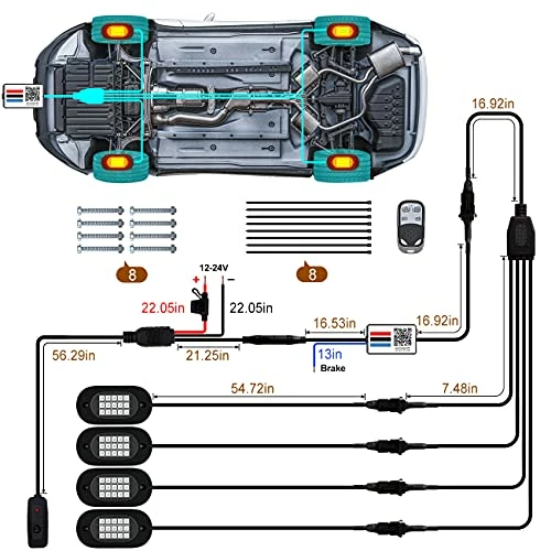 - Brake Warning Function & 2 Ways Control➤ ????❄️ Brake red light warning design, all underglow light kits will turn red when you are braking, ensure your safety on the road. RF/APP control, 4 Keys RF controller support to control underglow lights in quick way, APP support more functions.