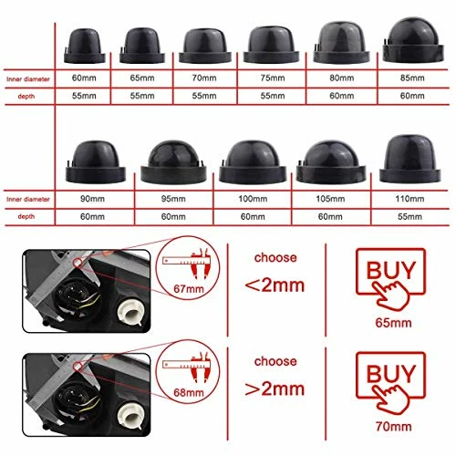 - This Dustproof Cover size have 60mm (2.36 inch) / 65mm (2.56 inch) / 70mm (2.76 inch) / 75mm (2.95inch) / 80mm (3.15 inch) / 83mm (3.27inch) / 85mm (3.35 inch) / 90mm (3.54 inch) / 95mm (3.74 inch) / 100mm (3.94 inch) / 105mm (4.13 inch) / 110mm (4.33 inch);