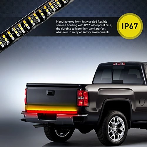 - Easy Installation: Just peel and stick, standard 4-pin flat connector plug and play. The tailgate light bar comes with tough-as-nails adhesive enhancer that can increases hold strength over 5X, no worries of falling off