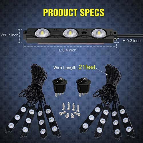 - Easy to Install: The reliable tape can be quickly installed and can be fixed with screws to be more secure; In addition, each strand with a switch, so you can freely control your LED lighting pods, has 21 feet of wire per strand (4 pods per strand), 2 feet of wire between each pod