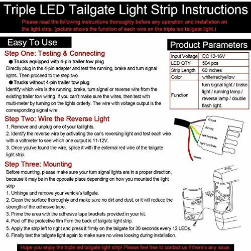 - ⭐Super Bright: 60Inch triple row tailgate light bar with 504 pcs 4014 SMD LEDs (168 Red & 168 White &168 Amber), which is 300% brighter than other single row light strip, effectively reminding the vehicles behind you. Make you driving safer.