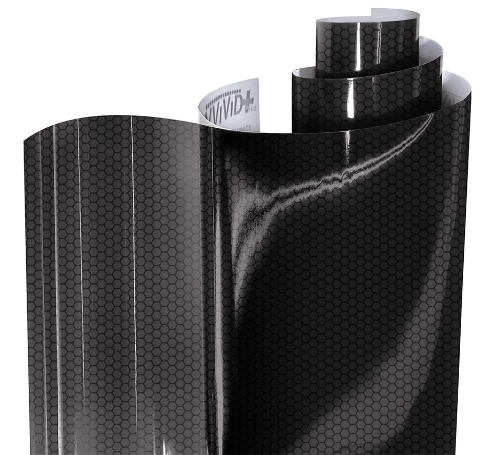 First off, Vvivid materials are great vinyls and this lens tint is no exception. There are great release properties to the film, no prep spray needed and it responds great to heat. Just a note on this specific product, the hex design is much smaller than is depicted on the ad. If you look at the ad you want to say the hexagons are about 1/4″ to 1/2″. The design is actually closer to 1/8″ hexagons. Other than that, this is a terrific product that can be installed by a beginner. Just be careful on your curves.